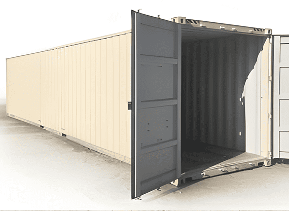 The 40' Easy Open Doors container allows for access from one end. If you have the space a 40ft container is a great value, as they typically cost more than $1,000 less than two 20ft containers. These units are in like new or new condition. Our 40ft cargo boxes offer the LATEST MOST UPTO DATE features, including a Lock Box, Easy Open Doors, Zerk fittings on the door hinges for greasing, and an extra SECURE cam/keeper for added security!